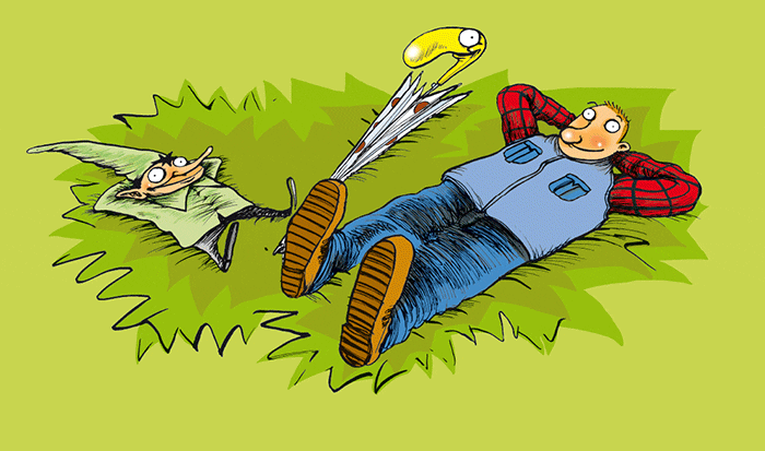 Y, efectivamente, cuál fue su sorpresa cuando, al mirar al suelo, Joseba vio un enanito vestido de verde, con un gorro verde, subido a su bota. El castañero no se lo podía creer y se quedó sin palabras. Entonces el enanito siguió hablando: